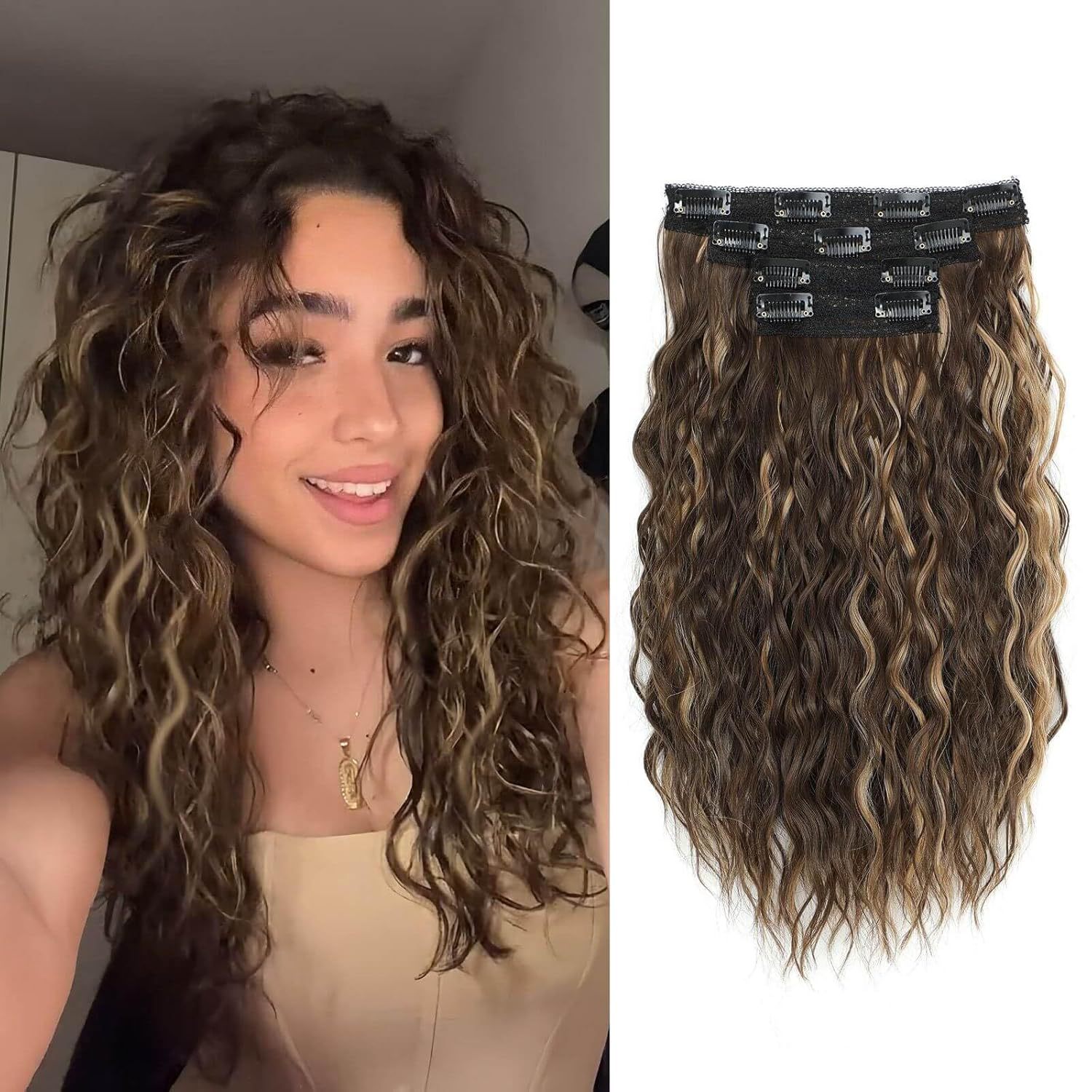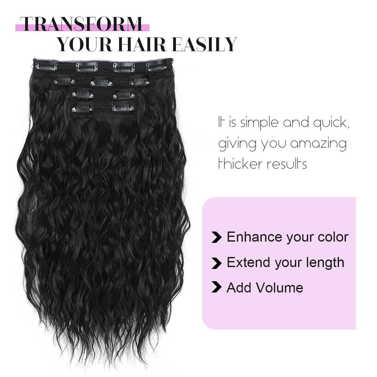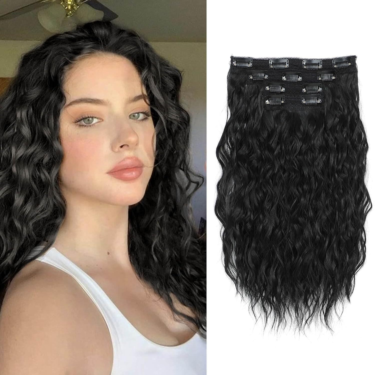 Factory wholesale Europe and the United States 4 pieces of water corrugated chemical fiber hair increase quantity hair clip hair wig 13inch