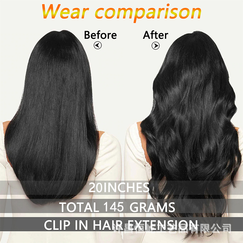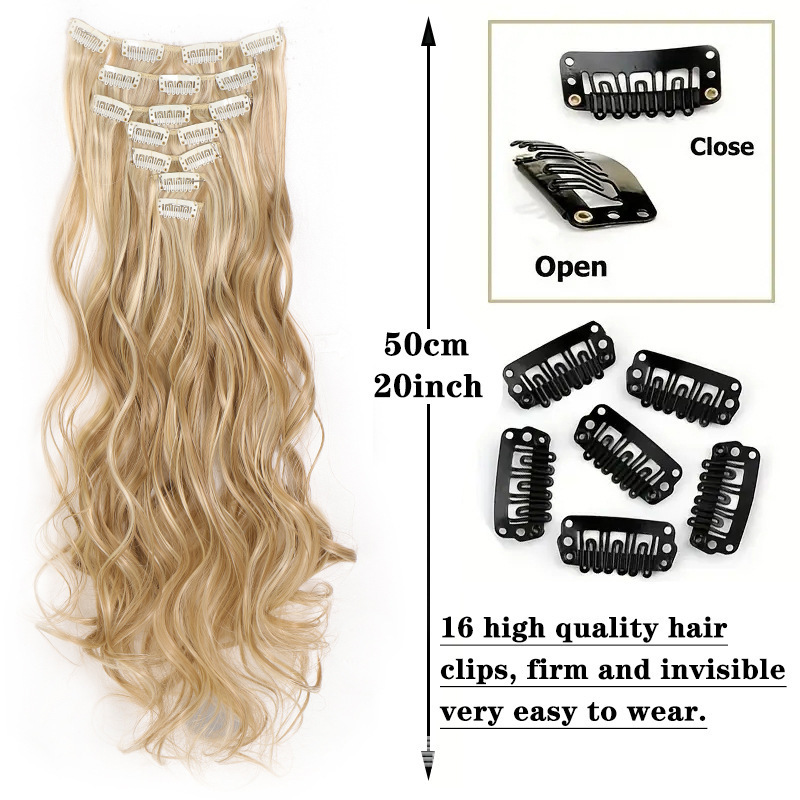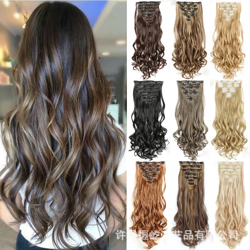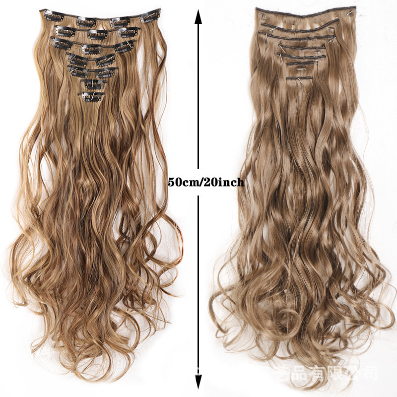 Cross-border foreign trade wig hair patch long curly hair big wave seven-piece set chemical fiber hair patch 17 clip hair in stock